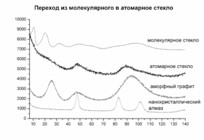 Рис.4. Переход из молекулярного стекла в атомарное графитоподобной с а ≈ 2агр, с ≈ сгр (аналогично интеркалатам щелочных металлов).