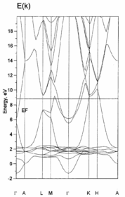 Известно, что для металлов с валентностью 2 поверхность Ферми пересекает границы зоны Бриллюэна. Это означает, что первая зона заполнена не полностью, и у границ зоны Бриллюэна имеется область свободных состояний или дырок, а во второй зоне имеются занятые состояния у границ первой зоны [4]. В этом случае вклад в дифференциальную термо-ЭДС вносят электроны и дырки, и его значение описывается в рамках двухзонной электронной модели соотношением [5]: