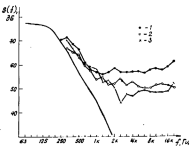 В акустической части оборудования не использовались какие-либо аналоговые фильтры для увеличения отношения сигнал-шум за счет подавления внешнего акустического шума лаборатории. Подобные фильтры значительно ухудшают переходные характеристики оборудования, что нежелательно при регистрации импульсных процессов. Поэтому нижний предел измерения акустических давлений был ограничен величиной ~60 - 65 дБ.