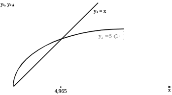 Розв’язавши останнє трансцендентне рівняння графічним способом рис.3, знайдемо значення змінної величини x, при якій функція (16) досягає максимуму x=4965.