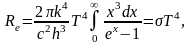 Тут k- стала Больцмана, яка дорівнює 1,38.10-23 Дж/К. З урахуванням цих позначень інтегральна випромінювальна здатність абсолютно чорного тіла Re, буде дорівнювати