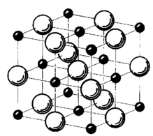 Рис.3. Организация атомов в кристалле поваренной соли (NaCl). Большие шары - ионы хлора, маленькие - ионы натрия.