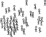 Рис.11. Собрание закончилось, и его участники, толпясь, устремляются к выходу, демонстрируя при этом значительные колебания плотности своего распределения.