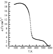 Рис. 4. Температурная зависимость удельной намагниченности сплава Mn1,2Zn0,8Sb в поле H=8.6 кЭ.
