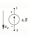 1. Источник напряжения (ЭДС) e, E - это такой элемент, напряжение между зажимами которого при любом токе, по величине равно ЭДС.