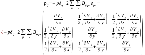 элементы единичной матрицы (с единицами на главной диагонали и нулями на всех остальных местах), матрица размерности 33, обозначенная e, называется тензором скоростей деформации, а тензорный коэффициент линейности Bij описывает свойства вязкой жидкости.