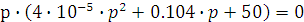 4·10-5·p2+0.104·p+50=0