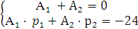 Из первого уравнения имеем А1=-А2