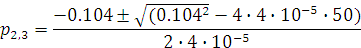 40·10-5·0.1·p2+(40·10·10-5·+0.1)p+50=0