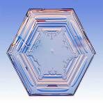Появляясь в воздухе при замерзании водяных капелек, ледяные кристаллы принимают обыкновенно одну из трех форм шестисторонних правильных призм: призмы, в которых длина очень велика по сравнению с их сечением; это (фиг. А на черт. 1) — всем известные ледяные иголочки, в морозные зимние дни массами реющие в самых нижних слоях атмосферы. Падая свободно в воздухе, такие иголочки располагаются длинной осью вертикально. Плоскости этих кристаллов, которые кружась, постепенно опускаются на землю, большую часть времени ориентированы параллельно поверхности. На восходе или закате, луч зрения наблюдателя может проходить через эту самую плоскость, и каждый кристалл может вести как миниатюрная линза, преломляющая солнечный свет.