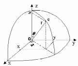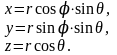 Співвідношення, які пов’язують координати x,y,z декартової прямокутної системи координат із сферичними координатами r, , такі:
