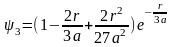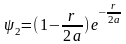 Хвильові функції для наступних основних двох енергетичних рівнів електронів у атомі водню мають вигляд