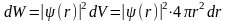 Покажемо, що вираз (9) є найбільш імовірною відстанню електрона в атомі водню до ядра. Імовірність знайти електрон на відставні r від ядра, точніше в інтервалі відстаней від r до r+dr, тобто в кульковому шарі з обємом dV=4r2 dr, дорівнює: