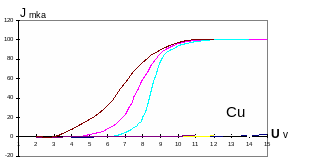 Вольт-амперная характеристика на участке тормозящего поля представляет собой интегральную кривую распределения электронов по энергиям. В самом деле, абсциссы этой кривой в некотором масштабе равны энергии электрона, а анодный ток, отложенный по оси ординат:
