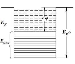 Таким образом, потенциальная энергия валентных электронов внутри металла меньше, чем вне металла, на величину, равную глубине потенциальной ямы