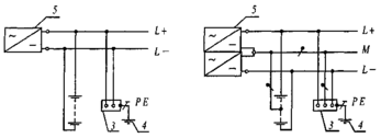 2 - открытые проводящие части; 3 - источник питания постоянного тока