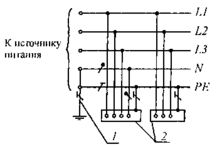 1 - сопротивление заземления нейтрали источника питания (если имеется); 2 — заземлитель;