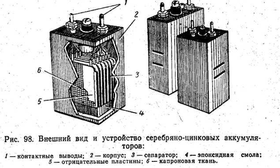 онструкция серебряно-цинковых аккумуляторов существенно отличается от конструкции обычных щелочных или кислотных аккумуляторов. В серебряно-цинковых аккумуляторах положительные пластины изготовляются из чистого, тем или иным способом приготовленного серебра, а отрицательные - из окиси цинка в смеси с порошком металлического цинка.