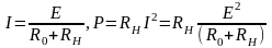 Согласованный режим – соответствует случаю, когда RН=R0 . При таком режиме мощность приёмника максимальна. Ток в цепи и мощность представляются выражениями: