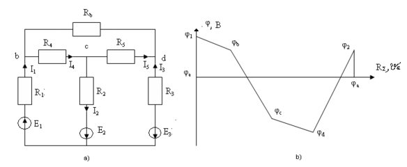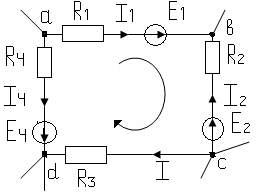 ΣEiIi – алгебраическая сумма мощностей, развиваемых источниками (Если положительное направление тока через источник ЭДС, то источник ЭДС работает в режиме генератора и произведение E*I>0. Если же направление I и E противоположны, то источник ЭДС потребляет энергию, т.е. работает в режиме приёмника и произведение E*I<0).