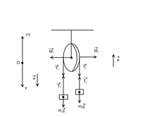 Решение: Запишем уравнения движения грузов и блока в отдельности. Груз массой