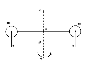 Решение: Общий момент инерции, проходящий через центр масс системы (точка С) равен сумме моментов инерции двух материальных точек массой