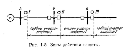 Кожний захист (наприклад, / на рис. 1-5) повинен відключати ушкодження на тій ділянці АБ, для захисту якого він створен (перша ділянка захисту /), і, крім того, повинен працювати при к. з. на другій ділянці БВ, що захищає релейний захист //. Дія захисту на другому ділянці називається далеким резервуванням. Воно необхідно для відключення к. з. у тому випадку, якщо захист // або вимикач ділянки БВ не спрацює через несправність. Резервування наступного ділянки є важливою вимогою. Якщо воно не буде виконуватися, то при к. з. на ділянці БВ і відмові його захисту або вимикача, ушкодження залишиться невідключеним, що приведе до порушення роботи споживачів усієї мережі.