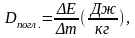 де Dпогл. - поглинена доза випромінювання, ΔE - енергія, поглинена речовиною, що опромінюється, Δm - маса речовини.