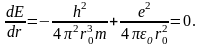 Як бачимо, залежність має мінімум при r = r0. Величину r0 легко знайти, узявши похідну від енергії E (1.1.20) по координаті r і прирів-нявши її до нуля: