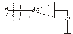 На рис. 1.3 К ― нагрітий катод, який є джерелом електронів; А ― сітка, яка створює прискорюване поле для цих електронів; Д ― діафрагма, яка дозволяє виділити вузький пучок електронів; В ― алюмінієва фольга; Е ― пластинка з двома круглими отворами, через які можуть пройти лише ті електрони, які розсіялись під кутом . Далі розміщена пластина F, з’єднана з електрометром G, за допомогою якого вимірюють електричний струм I.