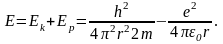 Оцінимо енергію електрона в атомі водню. Енергія електрона складається з кінетичної енергії Ek = p2/2m і потенціальної енергії, що на відстані r від ядра дорівнює Ep= -e2/4