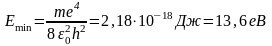 Ми одержали формулу й значення для радіуса першої “орбіти” електрона в атомі водню. Підставляючи значення r0 у рівняння (1.1.20), знаходимо вираз для мінімальної енергії електрона в атомі водню: