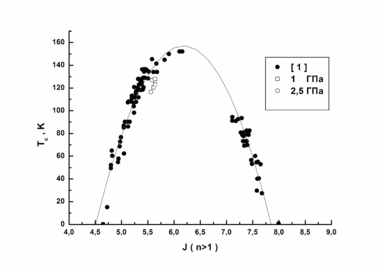 Рис.4. Зависимость температуры перехода в сверхпроводящее состояние от J