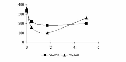 Установлено, что пленки SnO2 обладают максимальной чувствительностью к парам ацетона при температуре 360 оС, а пленки-нанокомпозиты, SnOх: MnOу, обнаруживают пары ацетона при более низких температурах, чем пленки нелегированного диоксида олова. Например, нанокомпозиты SnOх: MnOу с процентным содержанием Mn 0,4% ат. обладают максимальной чувствительностью к парам ацетона при температуре 160 С. Пленки SnO2: (1,7% ат) Mn имеют максимальную чувствительность к парам ацетона при 100 С, а пленки SnO2: (5% ат) Mn имеют максимальную чувствительность к парам ацетона при 260 С.