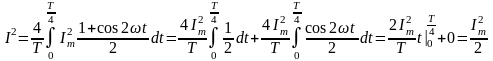 Другий iнтеграл дорiвнює нулю, оскiльки на iнтервалi часу, що кратний перiоду, додатнi та вiд'ємнi площi синусоїдної функцiї однаковi.