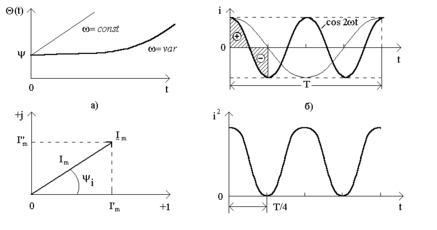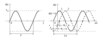 Синусоїдний струм (напруга, ЕРС) - це електричний струм, який є синусоїдною функцiєю часу. У лiтературi також застосовується назва гармонiчний струм - який змiнюється за синусоїдним чи косинусоїдним законами. На рис.2 показано часову дiаграму синусоїдного струму, миттєве значення якого визначається за формулою: