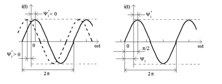 , то як початкова фаза використовується абсциса найближчого додатного максимуму (рис.3а). Рис.3б iлюструє спiввiдношення початкових фаз при синусоїднiй та косинусоїднiй формах запису: