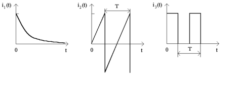 На рис.1 зображено часовi дiаграми миттєвих значень струму, значення якого змiнюються за часом. Друга та третя дiаграми вiдповiдають перiодичному струмовi.