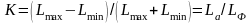 де LФ – яскравість рівномірного тла; Lа – амплітуда коливання яскравості на предметі уздовж осі х; N – частота решіток. Таким чином, граничні значення яскравості