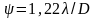 Для = 554 нм теоретична дозволяючи здатність виражена в кутових секундах: