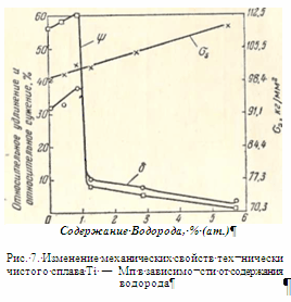 Механические свойства а-титана в значительной мере зависят от содержания водорода в металле. Степень охрупчивания, вызываемая данным количеством водорода, зависит в основном от чистоты металла. Ниже приводятся краткие выводы по влиянию водорода на свойства а-титана.
