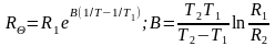Если для применяемого ПТР не известны коэффициенты А и В, Но известны сопротивления R1 и R2 при Т1 и Т2, то сопротивление и коэффициент В для любой другой температуры можно определить из соотношений: