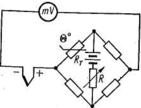 В качестве примера устройства автоматического введения поправки на. температуру свободных концов на рис. 10 схематично показано устройство типа КТ-0,8. В цепь термопары и милливольтметра включен мост, одним из плеч которого является терморезистор RT, помещенный возле свободных концов термопары (остальные плечи моста выполнены из манганиновых резисторов). При температуре в0 мост находится в равновесии и напряжение на его выходной диагонали равно нулю.