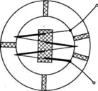 Для повышения выходной ЭДС используется несколько термопар, образующих термобатарею. На рис. 6 показан чувствительный элемент радиационного пирометра. Рабочие спаи термопар расположены на черненом лепестке, поглощающем излучение; свободные концы — на массивном медном кольце, служащем токоотводом и прикрытом экраном. Благодаря массивности и хорошей теплоотдаче кольца температуру свободных концов можно считать постоянной и равной комнатной.