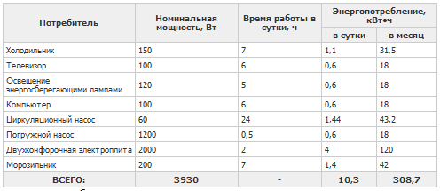 При низькій середньорічній швидкості вітру (в межах 3-4 м/с) електроенергія, здобута за допомогою ветроэнергетической установки, встає споживачеві в копієчку. Наприклад, в Підмосков'ї, де середньорічна швидкість вітру складає приблизно 4 м/с (3,7-4,2 м/с), сучасний вітряк потужністю 1 кВт видаватиме близько 120 кВт•ч/мес (втім, це вистачить для живлення декількох енергозбережних ламп, телевізора, холодильника і циркуляційного насоса - див. табл.). За рік вироблення устаткування складе 1440 кВт•ч, а за весь термін служби, тобто приблизно за 20 років (якісне устаткування повинне працювати стільки), - 28 800 кВт•ч. Вартість вітроенергетичної установки під ключ в комплектації, що забезпечує гарантоване енергопостачання котеджу, приймемо рівною $ 7000 ($ 3000-10 000). При цьому вартість 1 кВт•ч буде рівна приблизно $ 0,24, або по курсу на середину січня 2006 р. - близько 6,93 крб. за 1 кВт•ч. Для довідки: електроенергія, що купується приватними особами у держави, в Підмосков'ї коштує 1,60 крб. за 1 кВт•ч, а при підключенні через приватну компанію-постачальника - до 3,5 крб. за 1 кВт•ч.
