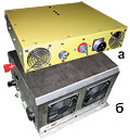 Пристрій для зарядки акумуляторних батарей (а). Інвертор, що перетворює постійну напругу акумуляторів в змінне однофазное 220 В/50 Гц для живлення побутових приладів (б)