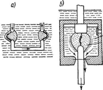 Давление, возникающее в выключателе в процессе отключения, играет и отрицательную роль, вызывая чрезмерные механические напряжения в стенках бака и приводя при отключении очень тяжелых КЗ к выбросу масла через выхлопную трубу, расположенную на крышке выключателя. Значение этого давления зависит, прежде всего, от количества энергии, выделяющейся на единицу длины дуги, и от количества возникающих при этом газов. Важную роль играет также циркуляция масла, электромагнитные и другие количественно и качественно трудно оцениваемые процессы.