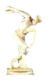 Соревновались древние и в метании диска. Были диски из дерева, камня, железа, бронзы, нередко украшались резьбой, изображениями птиц, животных или сценами спортивных соревнований. Вес диска был от 1,25 до 6,63кг. (Сегодня диск весит 2кг для мужчин и 1кг для женщин.) Среди болельщиков иногда очень ценились копьеметатели. Их охотно изображали и скульпторы.