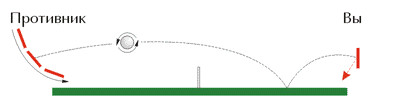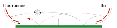 * Возврат шарика, при котором он касается сетки, но приземляется на противоположную сторону засчитывается;