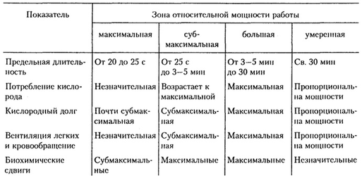 Характерным для этой зоны мощности является то, что некоторые функциональные сдвиги нарастают на протяжении всего периода работы, достигая предельных величин (содержание молочной кислоты в крови, снижение щелочного резерва крови, кислородная задолженность и др.).